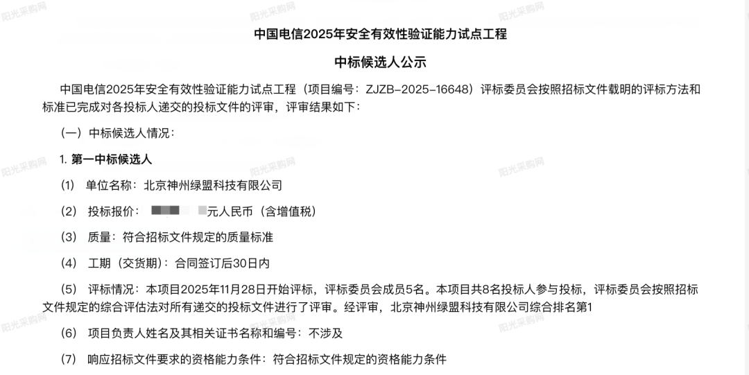 近日炒股怎么加杠杆资金,中国电信集团发布2025年安全有效性验证能力试点工程项目中标结果。绿盟科技以第一中标候选人身份成功中标,充分彰显了其在安全验证领域领先的产品竞争力和高度的行业市场认可。